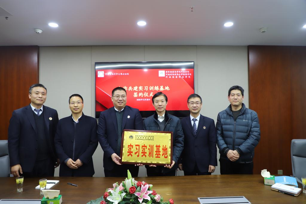 为进一步加强pp电子实习实训基地建设,优化人才培养模式,提升学生就业竞争力,12月28日下午,检察系主任郑志锋、检察系兼职教师王金垒、教学秘书武凯一行前往河南省郑州市大豫公证处,与该公证处李强主任开展座谈交流,就共建pp电子游戏平台官网实习实训基地一事达成协议,并举行了授牌仪式。