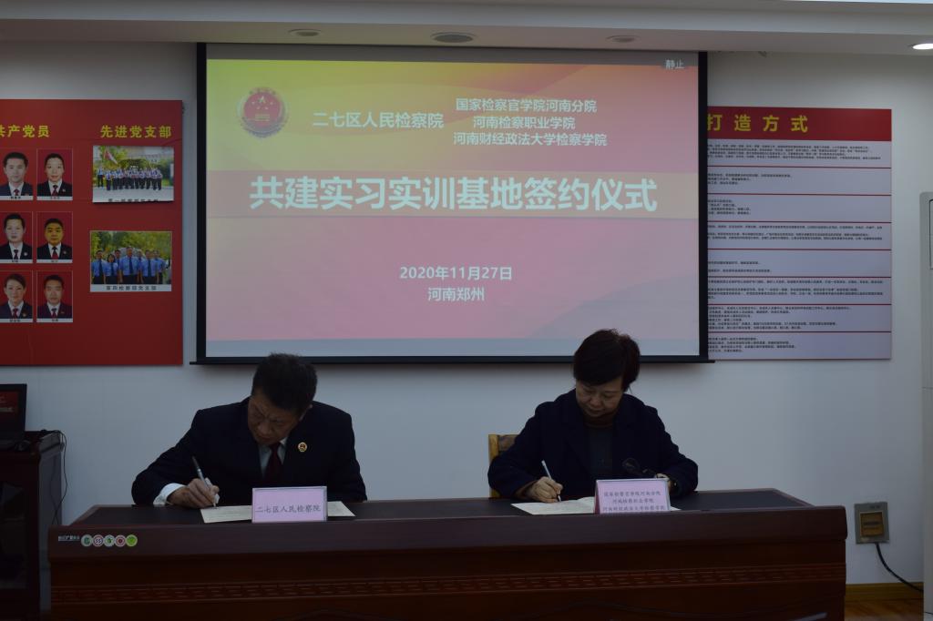 上午九点半,师生一行到达二七区人民检察院。殷宏副院长与二七区人民检察院党组副书记黄健代表双方签署了合作共建实习实训基地协议,并举行了实习实训基地揭牌仪式,观看了二七区人民检察院工作视频,了解了二七区人民检察院全体干警拼搏进取所取得的光辉业绩。