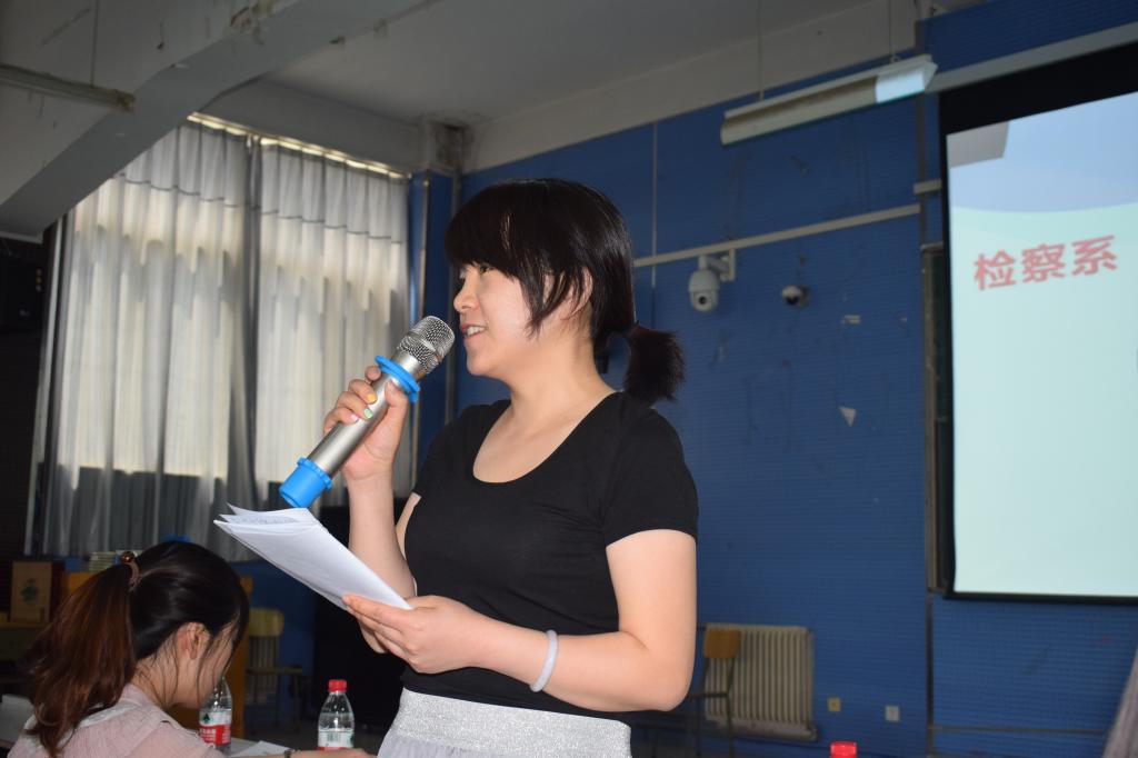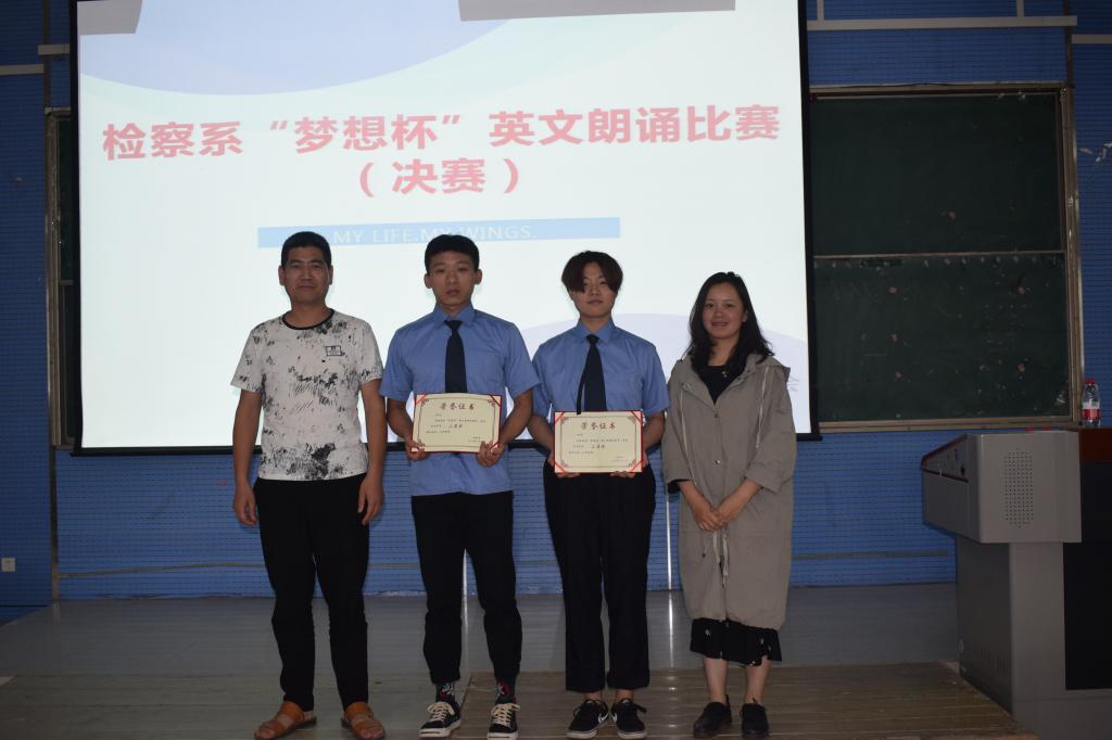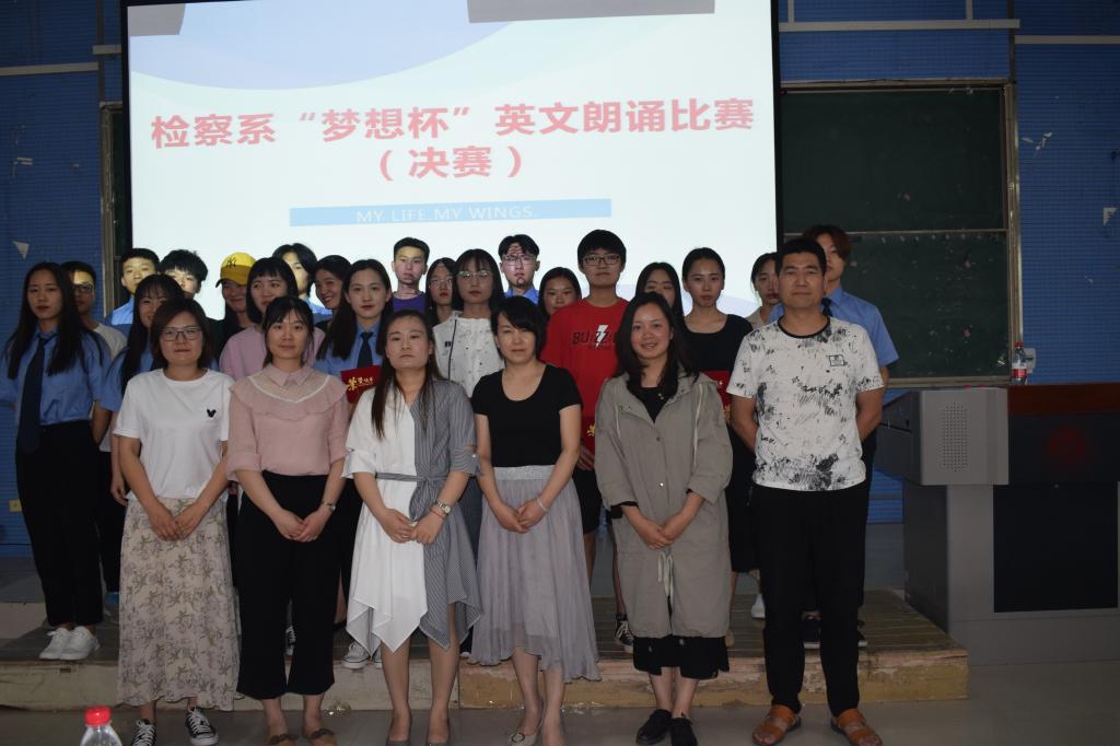 为培养学生良好的英语阅读、朗读习惯,帮助学生形成标准的语音和优美的语调,提高同学们对英文学习的热情,5月21日,检察系大学生英语协会在2301教室举行“梦想杯”英语朗诵比赛。检察系教务科科长时瑞燕、检察系大学生英语协会负责人冯晓燕等老师担任评委。