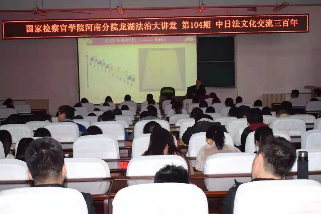 为使学生深入了解中日法文化的发展变迁过程,11月6日下午,检察系特邀中国政法大学法律史研究院副教授、法学博士陈煜老师到pp电子龙湖法治大讲堂讲授《中日法文化交流三百年》。检察系2018级本科以及速录、信息化班全体学生到场聆听。检察系主任郑志锋主持。