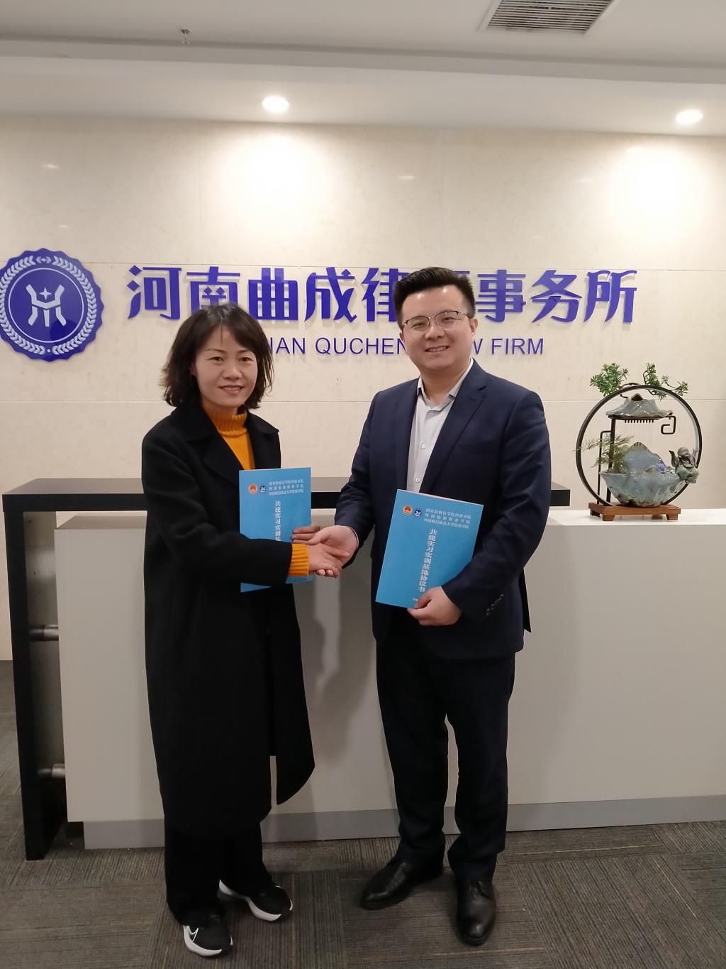 2021年3月31日上午,受学院领导指派,检察系副主任郭月霞、教学秘书武凯一行,前往河南曲成律师事务所,与该所主任律师上官绪波友好协商,就共建pp电子游戏平台官网实习实训基地一事达成一致,并举行了签约仪式。该所合伙人马振凯、李申鹏,法律援助部负责人朱亚萍等参加了座谈。