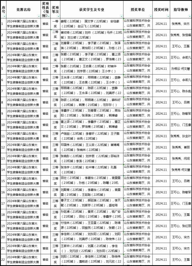 近日,第六届山东省大学生装备制造业创新大赛圆满落幕,bat365官网机电工程学院在本次竞赛中表现卓越,喜获山东省一等奖1项、二等奖4项、三等奖17项。