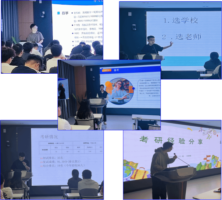 交流会上,陈敏军老师先向同学们梳理了机电工程学院近三年的研究生考取情况并重点分析了当前的考研形势。随后,邀请2024届考研成功的徐竹梅、杜德一、李思雨、李明宇、刘增辉5位同学先后从择校、报名、笔试、复试、调剂、制定考研计划、调整备考心态等不同方面分别进行了详细的讲解并向同学们推荐了考研书籍、考研公众号等学习资料和学习平台。现场同学积极提问,就如何抓住复习重点等问题同5位同学进行了深度交流,收获了宝贵的学习经验。