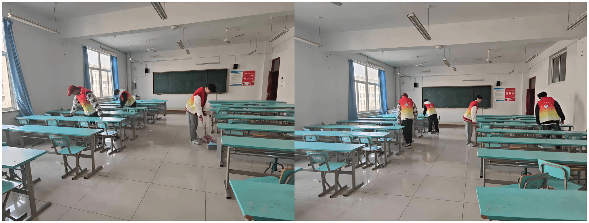 通过在校内打扫卫生,同学们能够直接感受到自己的努力对校园环境的改善和美化同时也能提高他们的团队协作能力和社会责任感。这种活动可以培养学生爱护公共设和校园环境的意识,也是学习雷锋精神的一种实际体现。整个打扫过程进行的井然有序、大家分工明确齐心协力地共同清理垃圾。