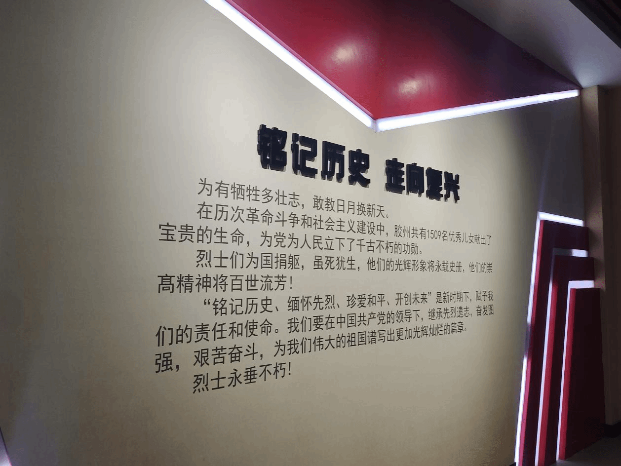 胶州烈士陵园始建于1955年10月,园北为纪念区,纪念堂内陈列着各个历史时期为国捐躯的2151位革命烈士的光辉事迹。墓地呈扇形,安葬着在抗日战争、解放战争、抗美援朝、对越自卫反击战和社会主义建设时期为民族独立、人民解放、国家安全而英勇献身的758位烈士。
