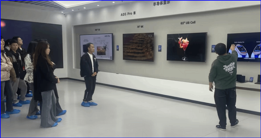 到达企业后,在企业负责人的带领下参观了京东方产品展示中心及生产线,详细听取了企业发展历程、产品研发、技术创新等,深入了解了企业最新显示研发成果、最新全自动模组产品线生产过程、各类智慧物联应用场景等,实地参观了员工工作环境、就餐环境和住宿条件等。