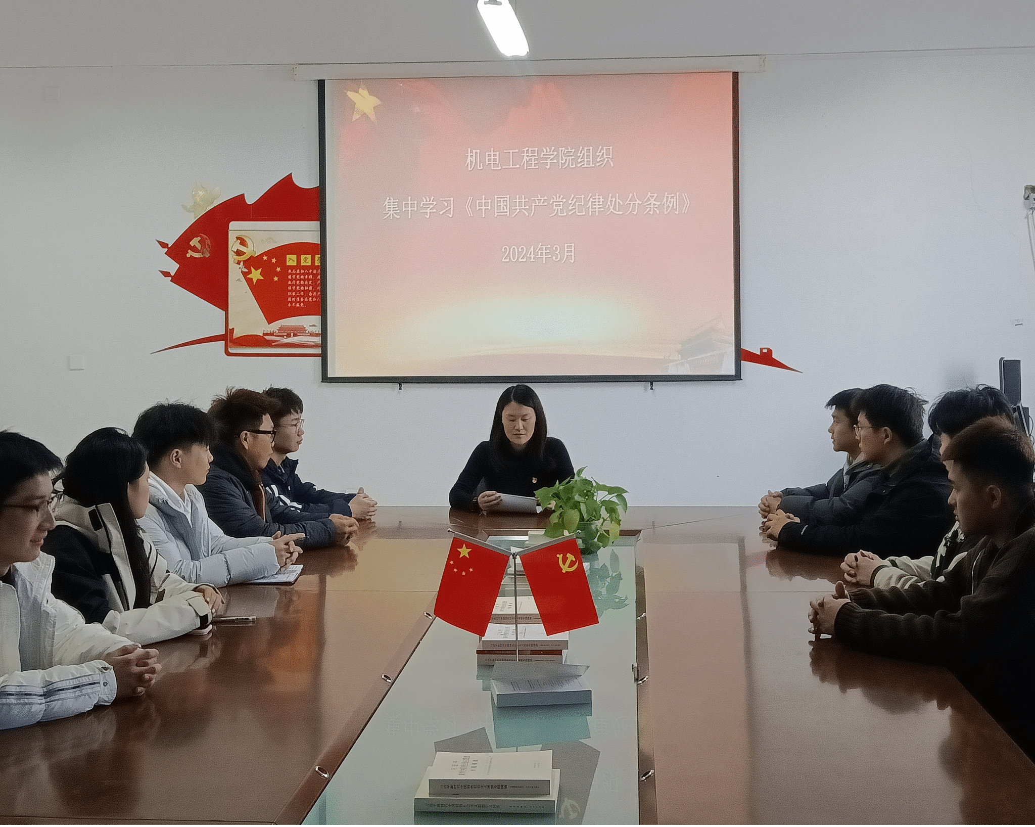 为提高学院支部党员的思想认识,切实加强纪律教育,增强行动自觉,4月2日机电工程学院学生第二党支部在4212集中学习《中国共产党纪律处分条例》,会议由支部书记王焕美主持,支部全体党员参加学习。