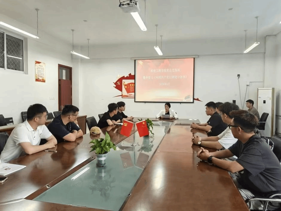 为深入贯彻落实习近平总书记关于党纪学习教育的重要讲话和重要指示精神,5月29日机电工程学院学生第一和第二党支部在4212集中学习《中国共产党纪律处分条例》,会议由支部书记王焕美主持,支部全体党员参加学习。