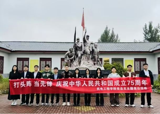 为庆祝中华人民共和国成立75周年,进一步贯彻党的二十大精神,增强党员意识,自觉锤炼党性,激励广大党员干部坚定理想信念,更好地发挥党员先锋模范作用。2024年10月18日,机电工程学院学生党支部开展《打头阵、当先锋,庆祝中华人民共和国成立75周年》主题党日,参观“胶高魂”革命历史纪念馆,接受革命历史教育,缅怀革命先烈,追忆艰苦抗战岁月。
